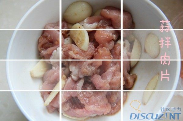 肉片,我喜欢用蒜片酱油拌一下,蒜能提高肉的营养价值。