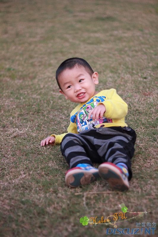 或许是玩累了,小子看到这片已然不那么茂盛的草坪躺了下去。